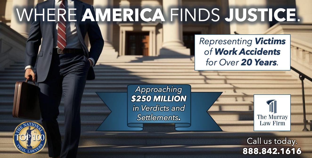 The Murray Law Firm has recovered millions of dollars for individuals who have been hurt, or families whose loved ones have been lost, in a work accident or as a consequence of an unsafe property. We have obtained nearly $250 Million in verdicts and settlements for our Clients, including a $29.25 million dollar verdict for the family of a worker who lost his life at an unsafe property as consequence of a product defect. We offer our legal assistance, if desired.